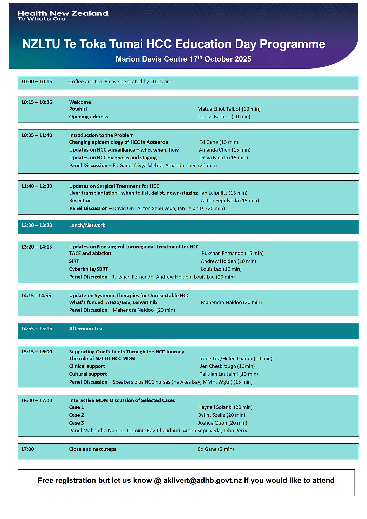 To register email aklivert@adhb.govt.nz
