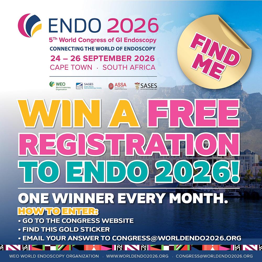 Each month Endo 2026 giving away one free registration to the 5th World Congress of GI Endoscopy in Cape Town!