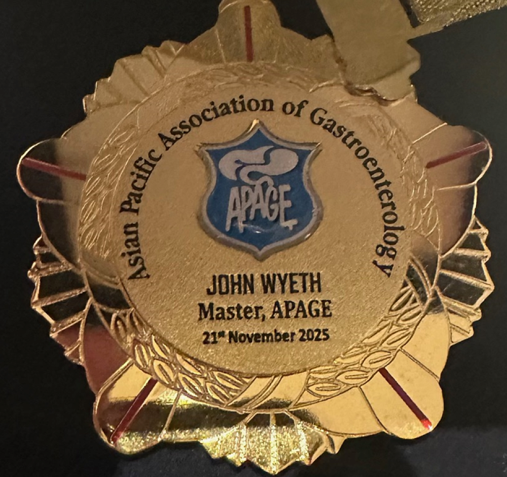 The Asian Pacific Association of Gastroenterology (APAGE) has awarded Dr John Wyeth one of its highest honours, naming him an inaugural Master of APAGE.